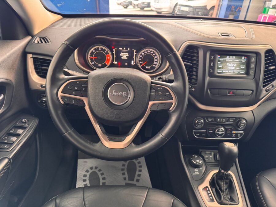 JEEP CHEROKEE 2.0 4X4 Equipado con modos de conducción, Climatizador BiZona, Volante Multifunción, Manos libres, Control de Velocidad, sensores de Aparcamiento luces y lluvia, Modos de Conducción, asiento de cuero eléctricos, Llanta de Aluminio, Portón eléctrico, Bola de remolque…etc