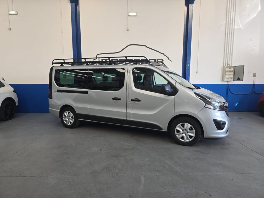 OPEL VIVARO 1.6CDTI 120CV, nacional, equipada con 6 plazas, aire acondicionado, sensores de aparcamiento trasero, luces y lluvia, control de velocidad, volante multifuncion, baca, bola de remolque, etc…