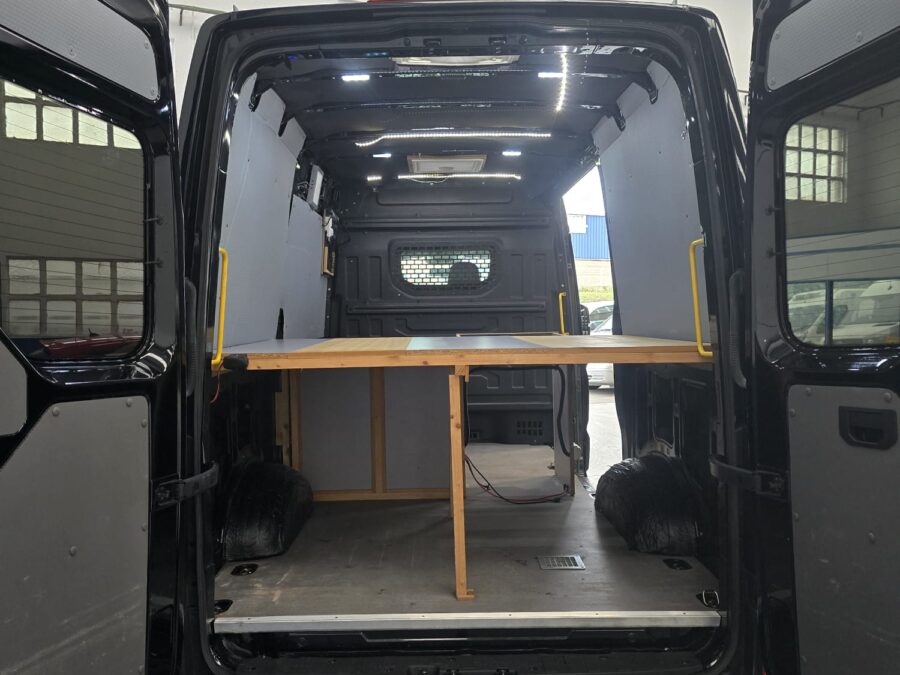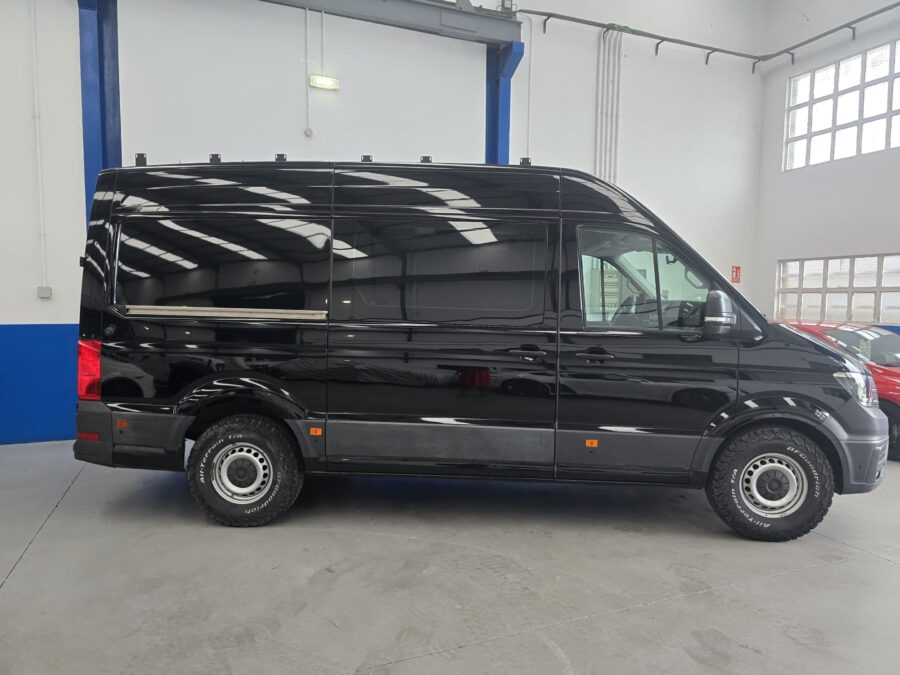 VOLKSWAGEN CRAFTER 2.0 4MOTION 177CV, nacional, cabina equipada con 3 plazas, aire acondicionado, sensores de aparcamiento, tracción 4×4, conexión USB, control de velocidad, calefacción estacionaria con mando, bola de remolque, caja con preinstalación para camper, con 2 claraboyas, preinstalación de electricidad, aislamiento, etc…